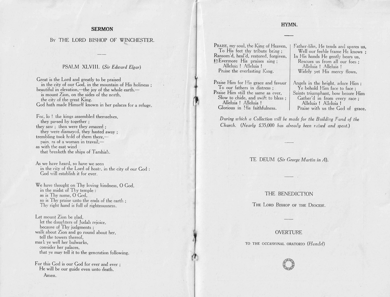 1924 A Souvenir of the Festival of Completion of St Matthews Church, Southsea